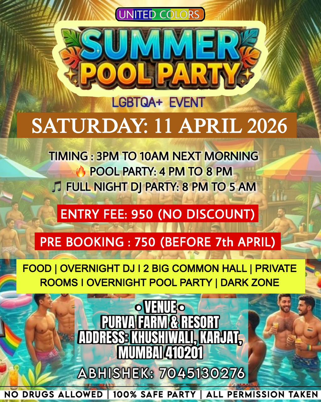 United Colors presents: Summer Pool Party Mumbai | LGBTQ Pool Party 11 April 2026 Karjat