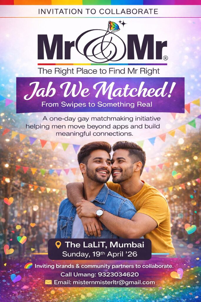 Mumbai: A unique LGBTQ-focused matchmaking initiative, “Jab We Matched – From Swipes to Something Real,” is set to take place on 19 April 2026 at The LaLiT, Mumbai.